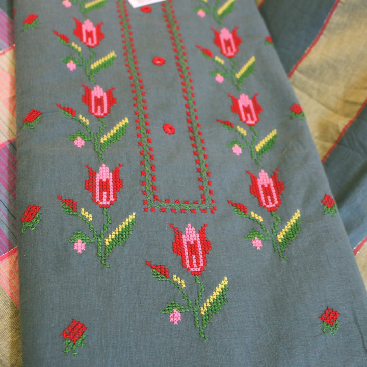3-PC - CROSS-STITCH on KHADDAR - KV2-4047