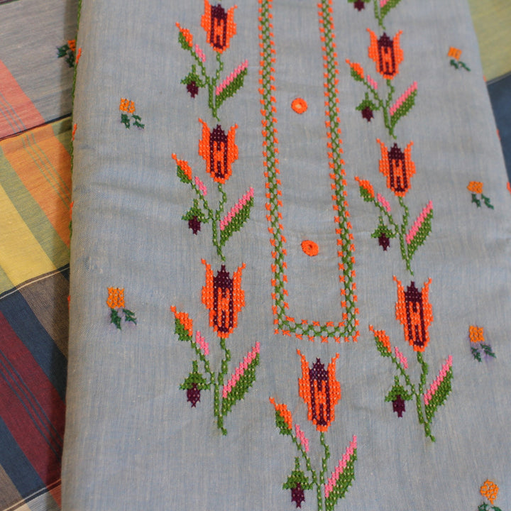 3-PC - CROSS-STITCH on KHADDAR - KV2-4050