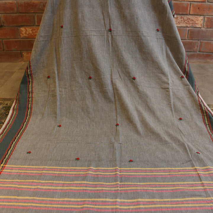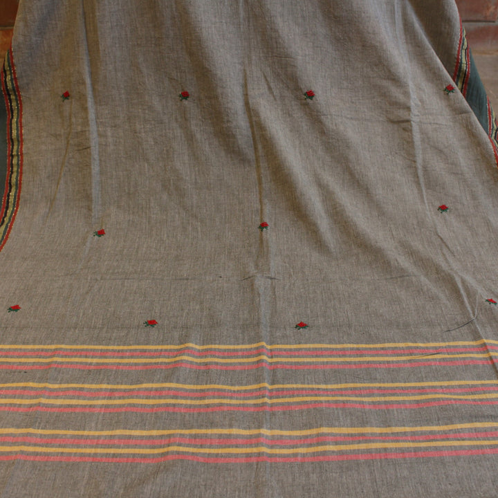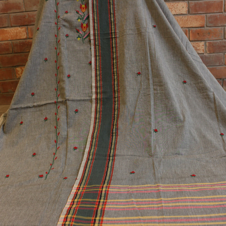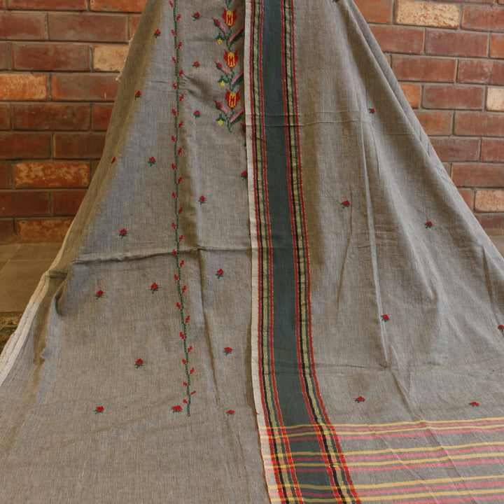 Our signature embroidery features elegant cross-stitch with mirror work, crafted with multicolored threads. The dupatta and sleeves are detailed with eye-catching motifs, while the back is left plain to balance the design. We recommend a loose fit to preserve the fabric’s durability.