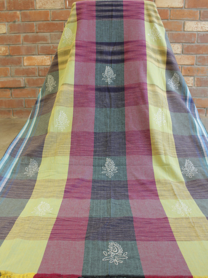 This hand-embroidered piece showcases vibrant, multi-colored detailing on the shirt, with intricate motifs adorning the sleeves. The back is left plain to create a balanced and elegant look. For durability and comfort, we recommend stitching it in a loose fit to prevent fabric stress. Crafted from soft, pure cotton, it requires gentle care—hand wash with mild detergent only. Please note, slight variations in color and design add to its uniqueness, ensuring every piece is one of a kind.