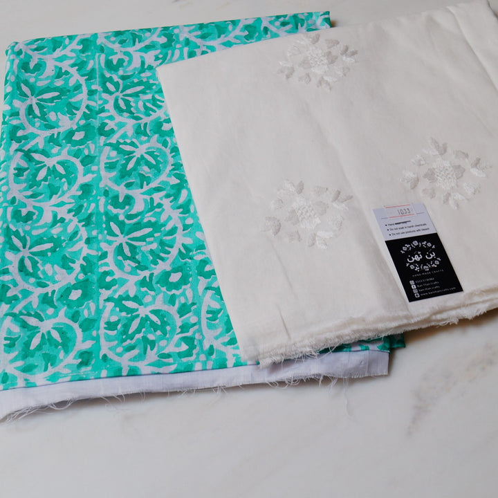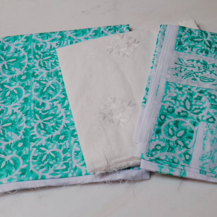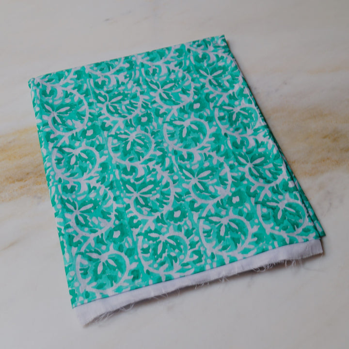 Hand block printed on white lawn