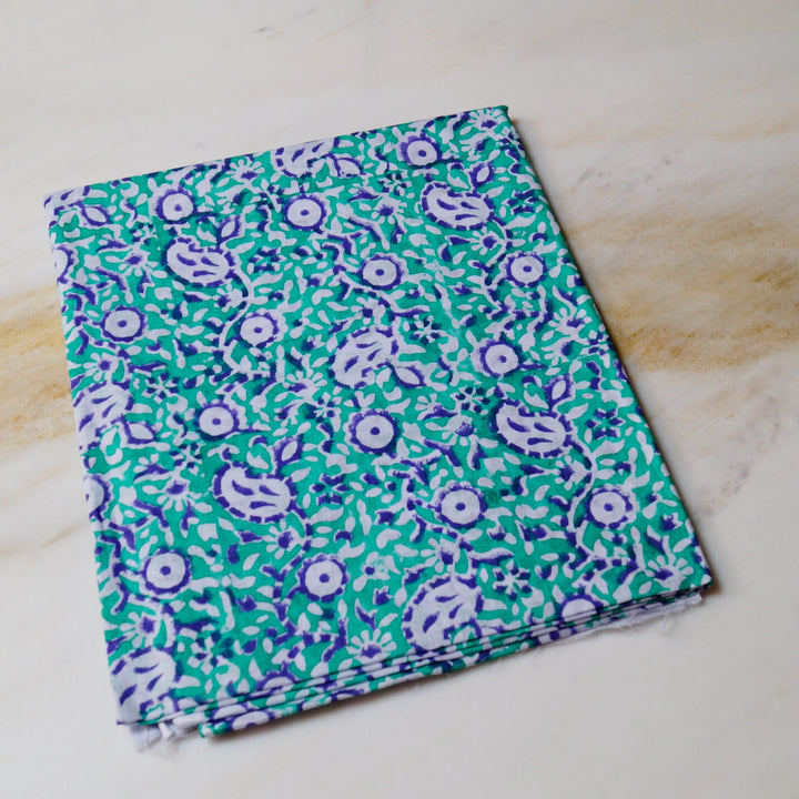 Aqua Purple Blossom - Lawn - 2 pc - Block Printed