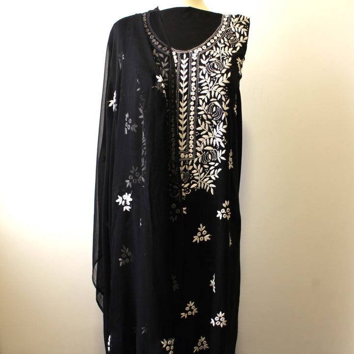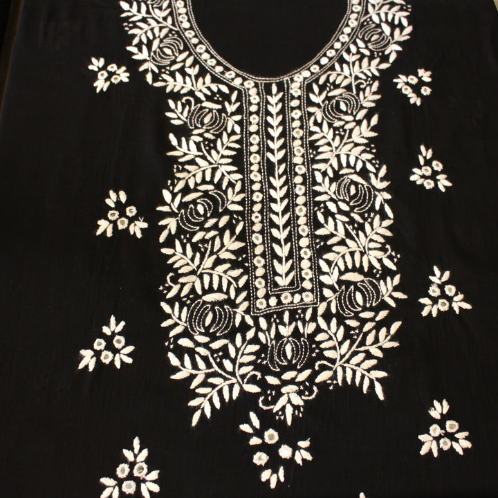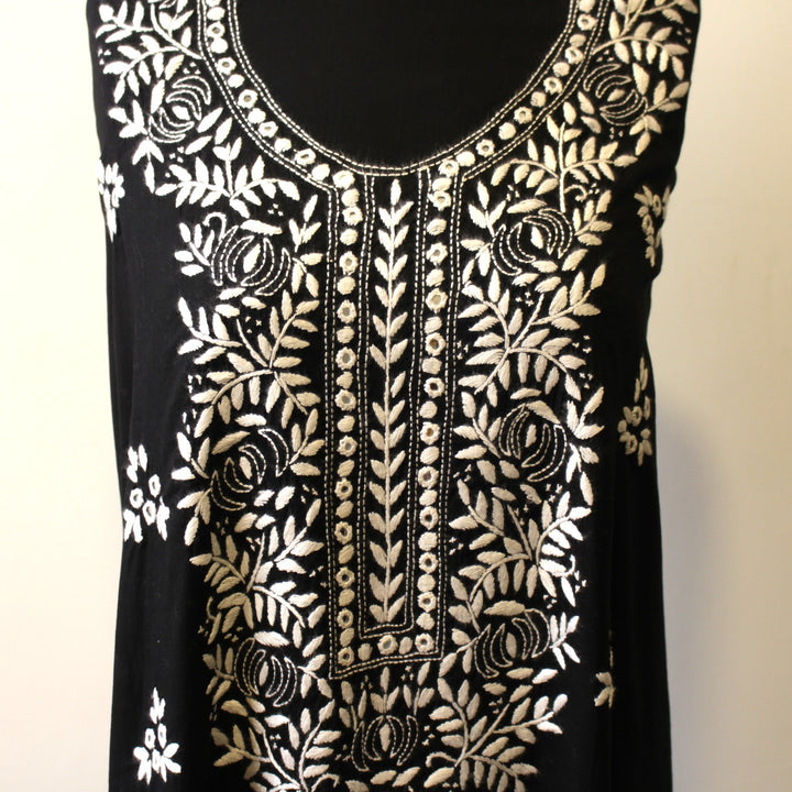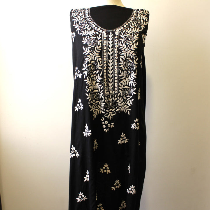 - Plain matching trousers with embroidered hem (paincha) for added detail