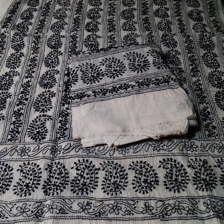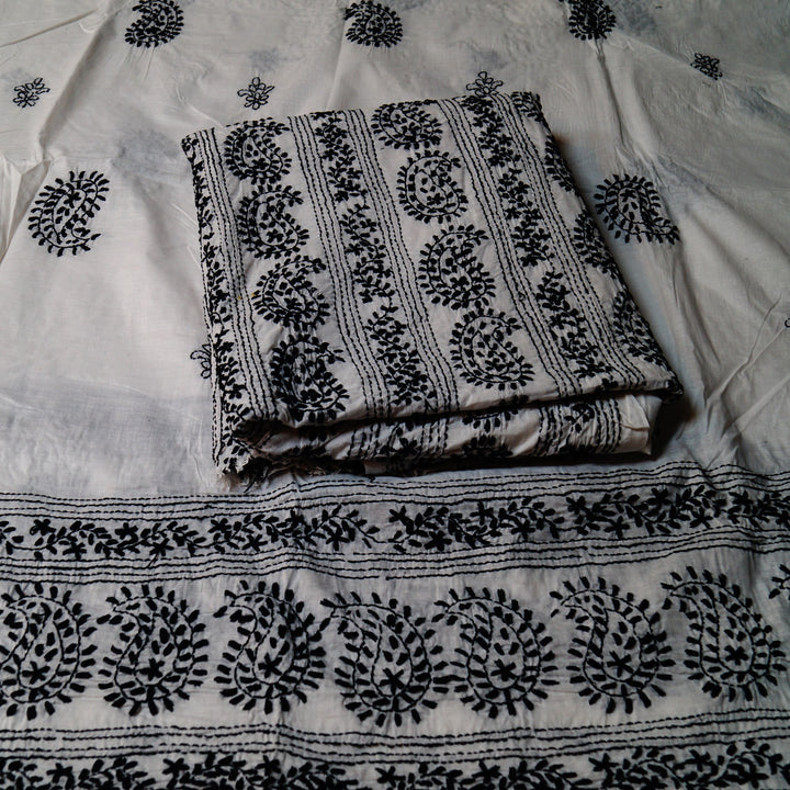Black on White - Chikankari - Kurta (with border) & Dupatta