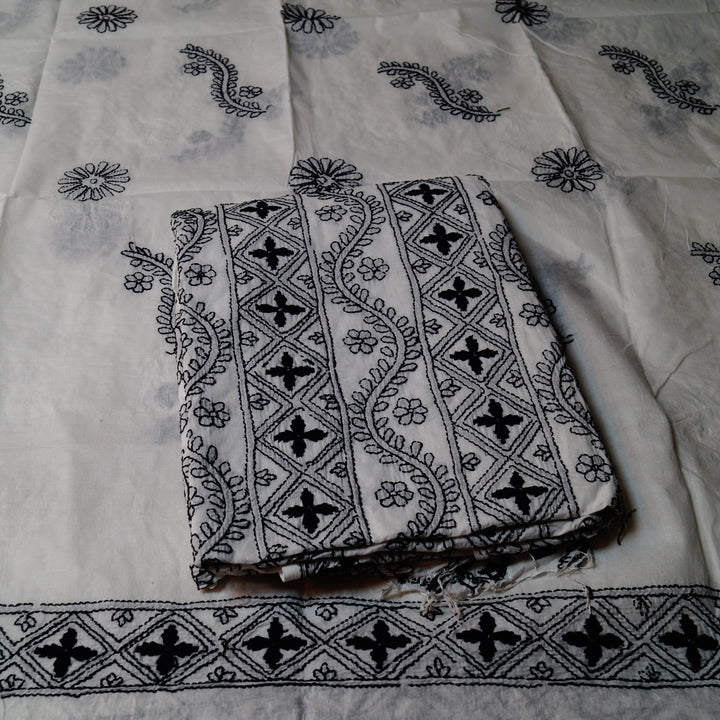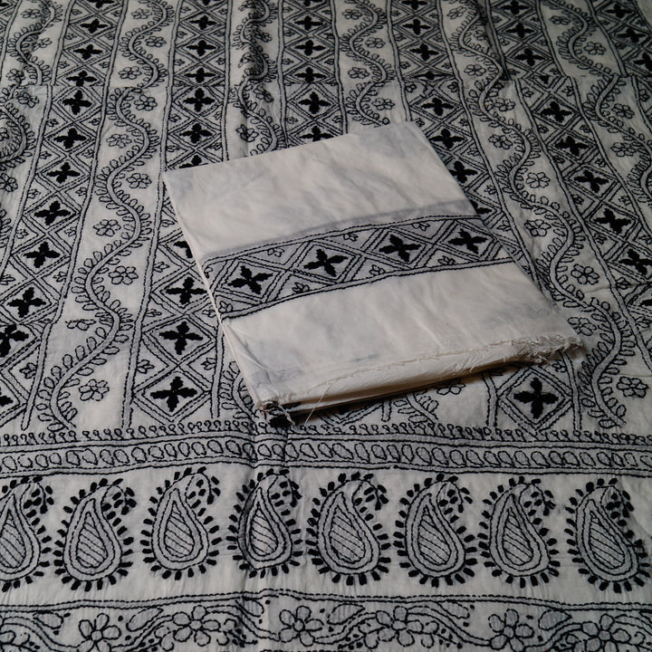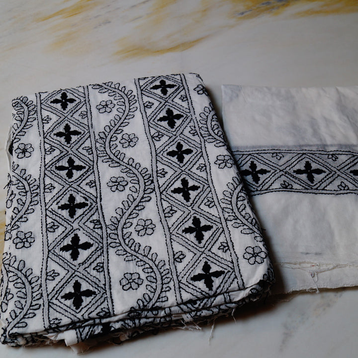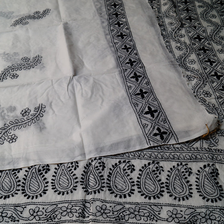 Black on White - Chikankari - Kurta (with border) & Dupatta