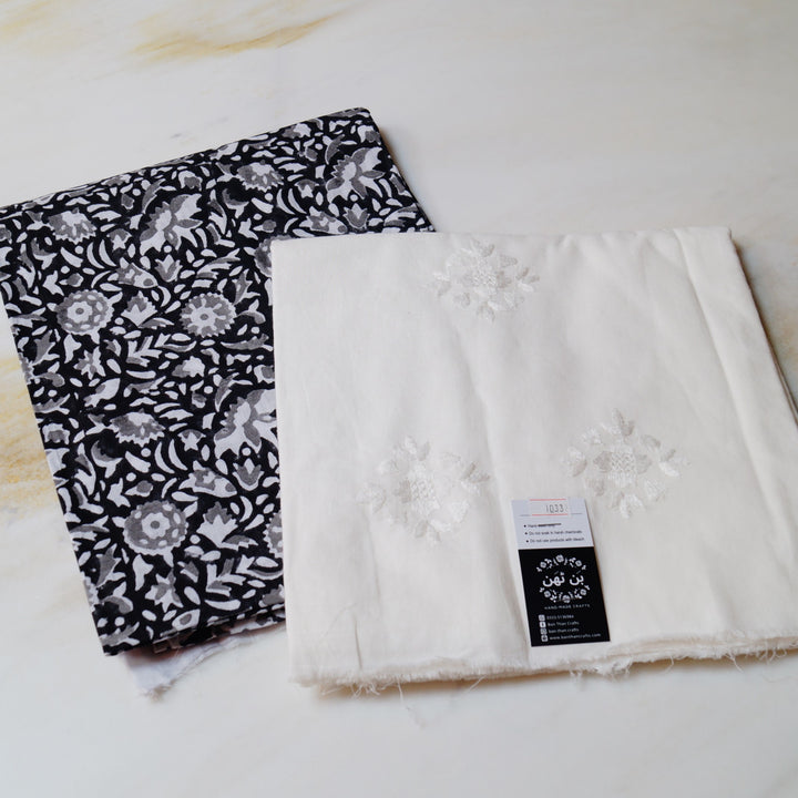 Hand block printed on white lawn