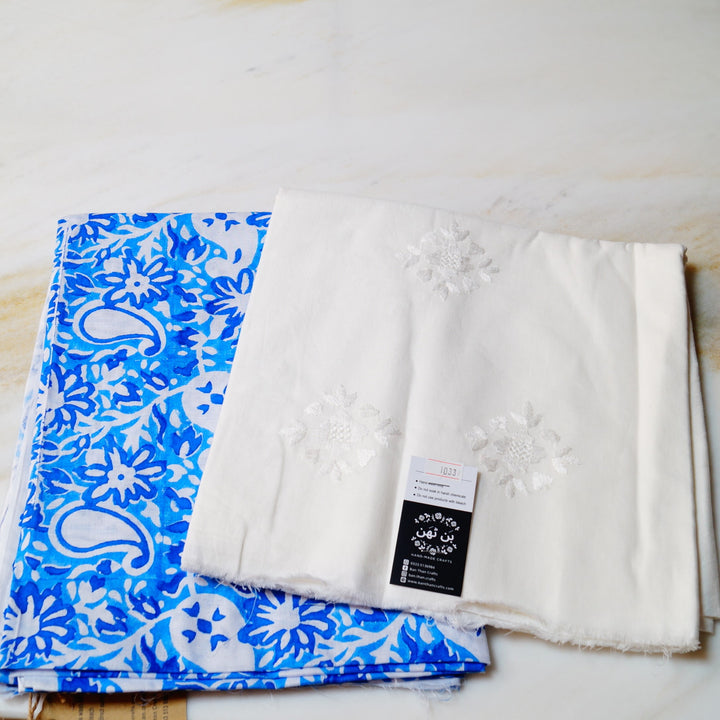 Hand block printed on white lawn