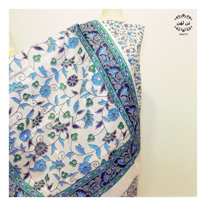 Hand block printed on white lawn