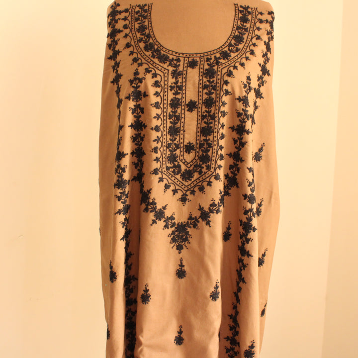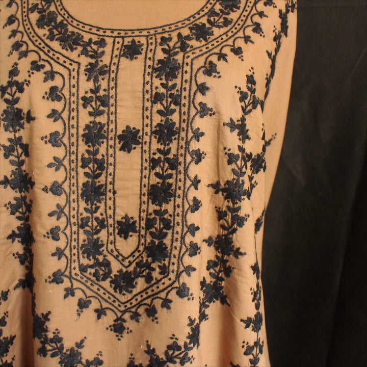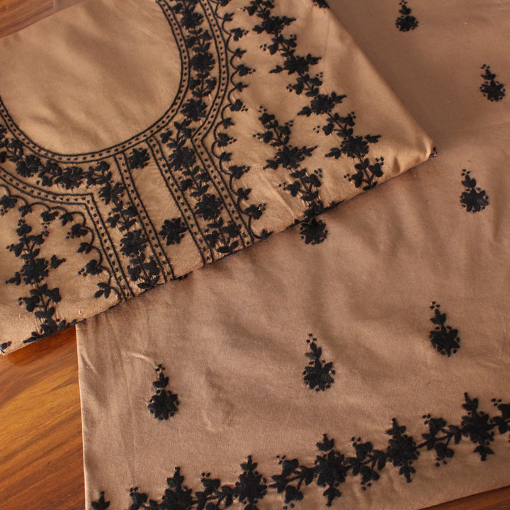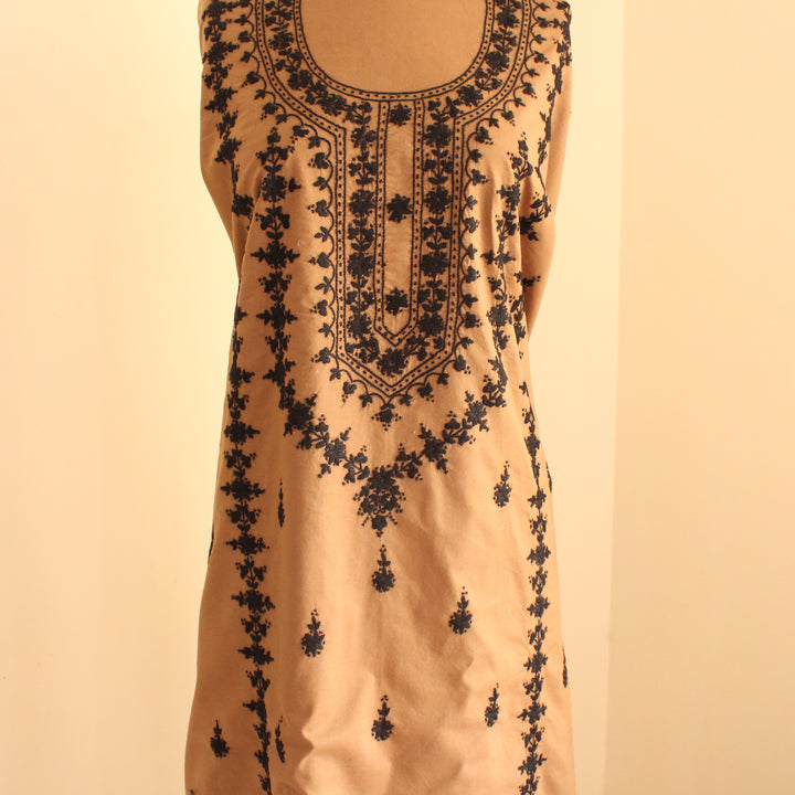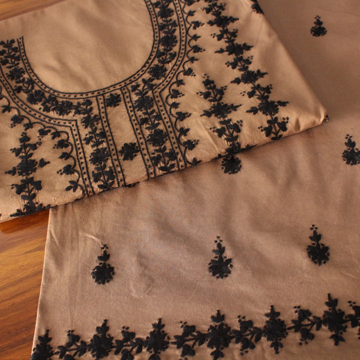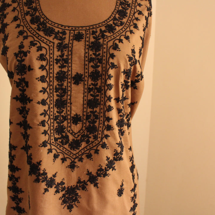 A statement piece in coffee share! 'Coffee Queen' kurta is hand-embroidered with black cotton thread, with the most delicate details & intricate work.