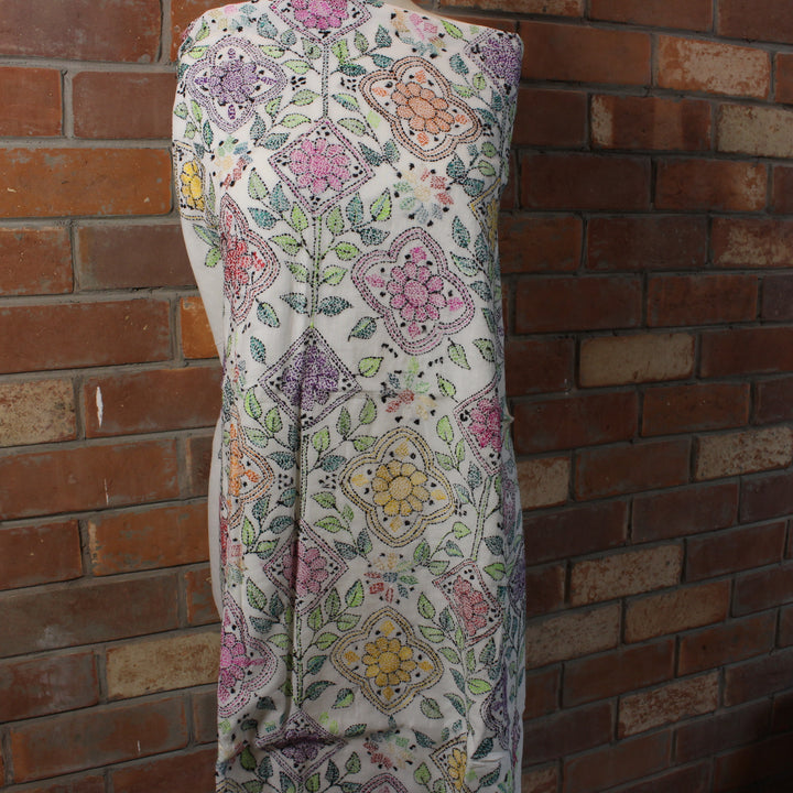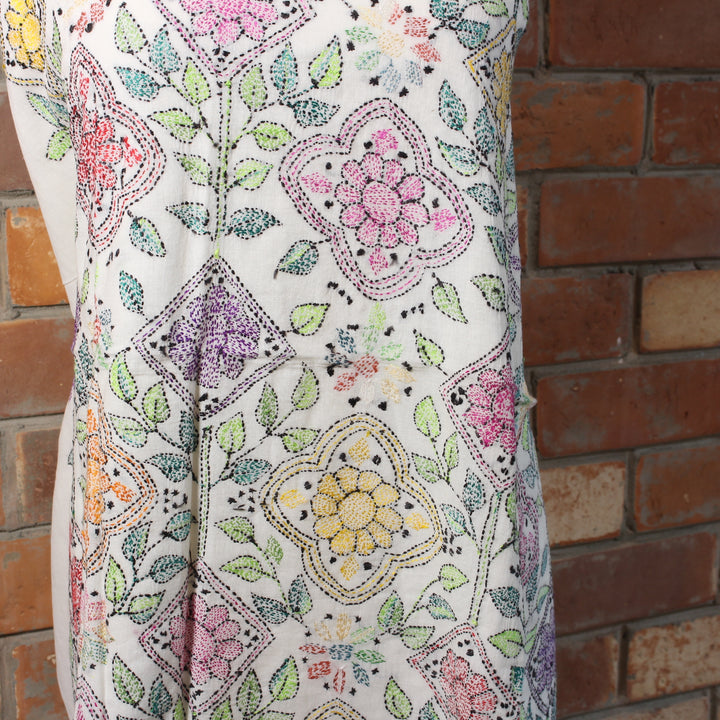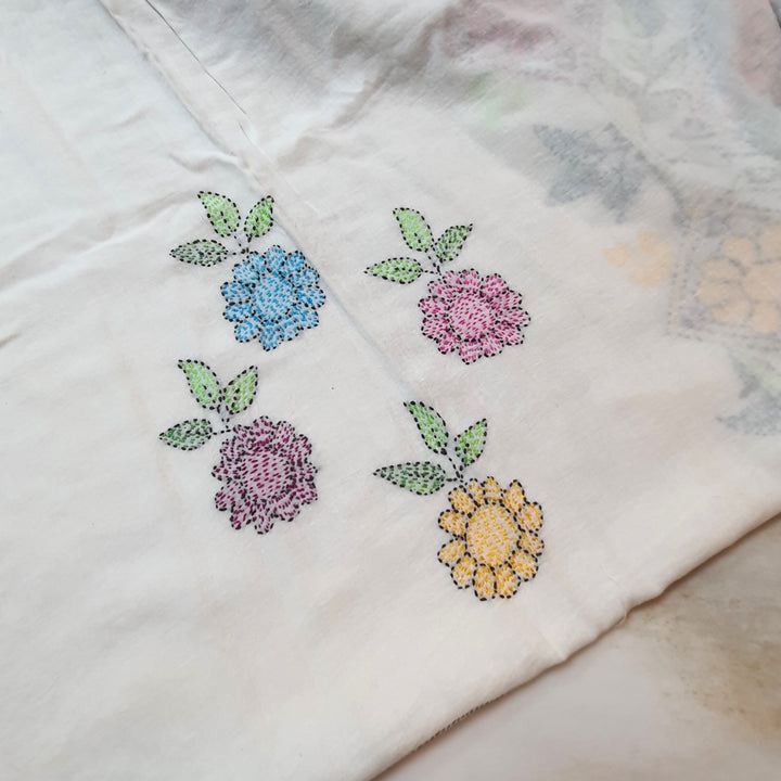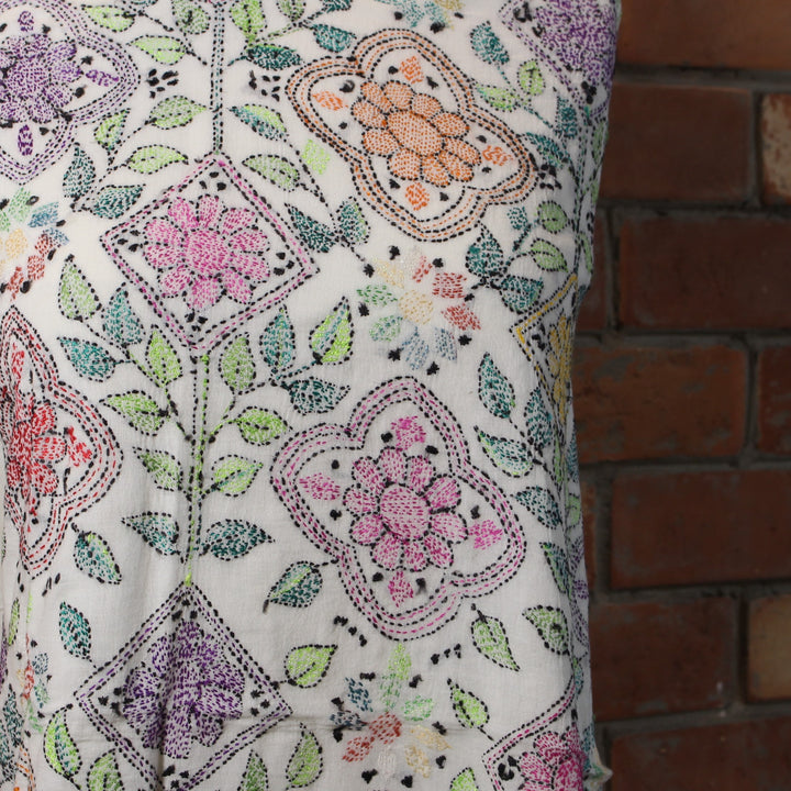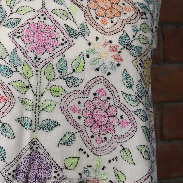 - Hand-embroidered front with delicate kantha work