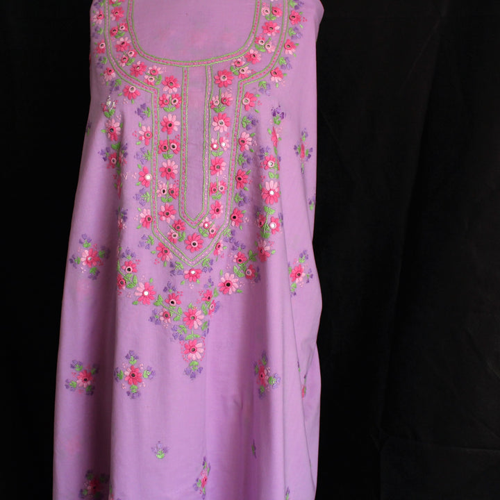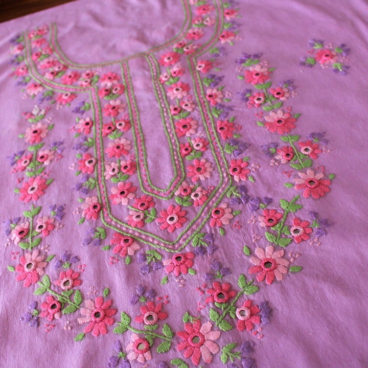 A statement piece in lilac! ‘Dream Come True’ kurta is hand-embroidered with multi-colored cotton thread & mirror-work, with the most delicate details & intricate work.