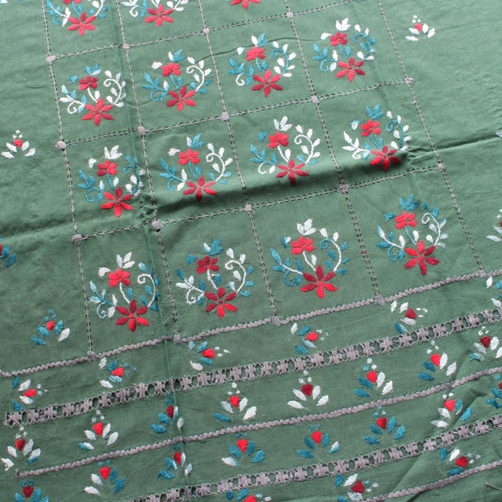 Hand embroidered front with neckline)