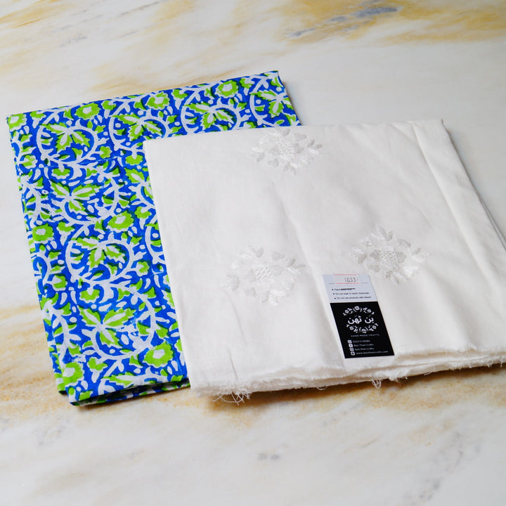 Hand block printed on white lawn