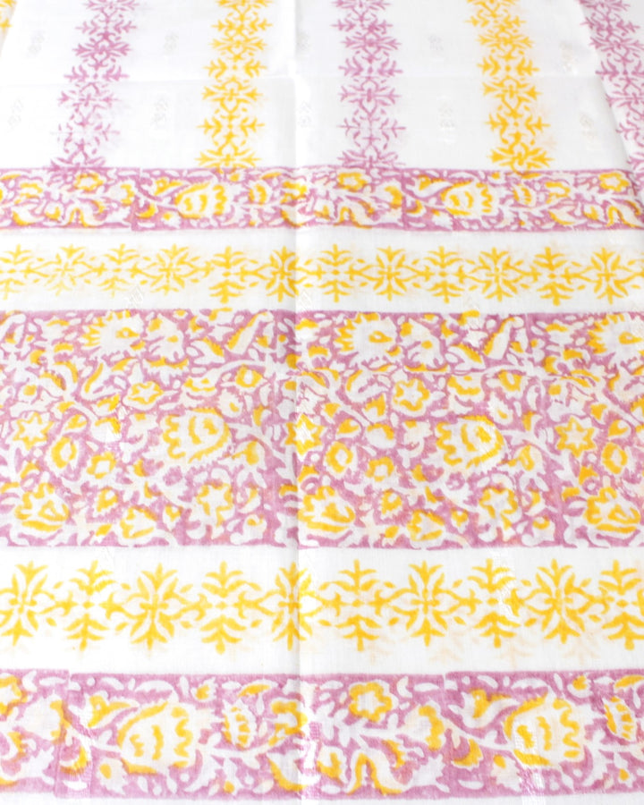 - Hand block-printed with intricate borders & motifs