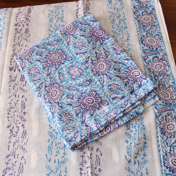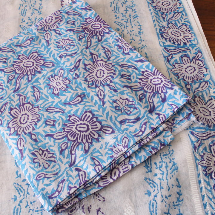 Ice Blue & Purple - Lawn - 2 pc - Block Printed
