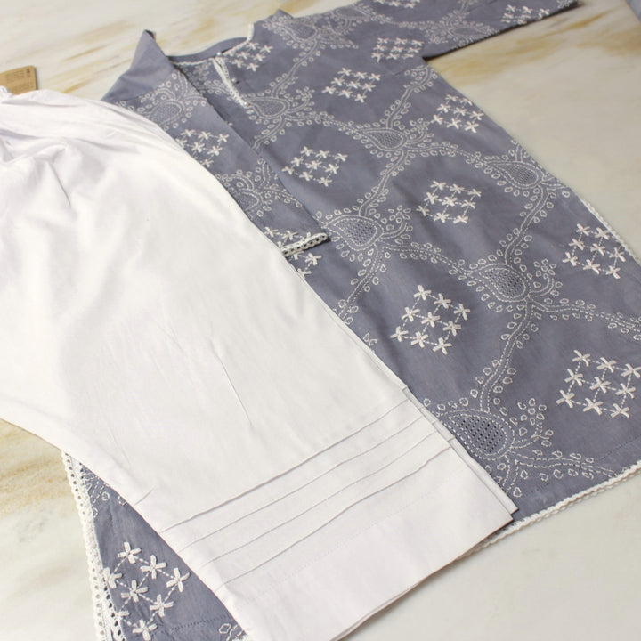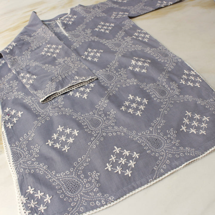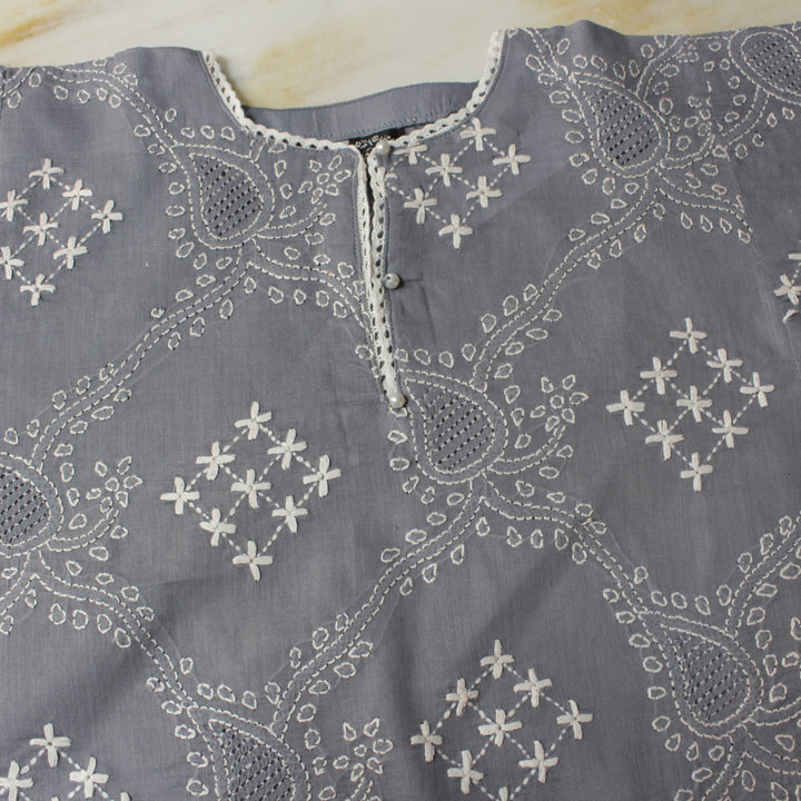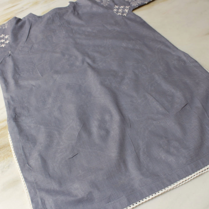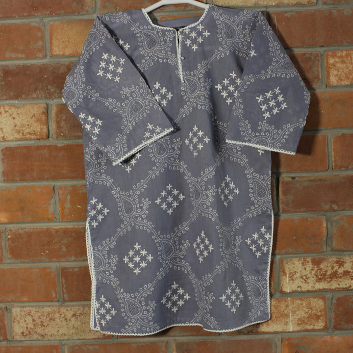 Kids - Silver Cloud - Hand-Embroidered Kurta - Size 7-8 years