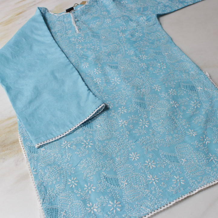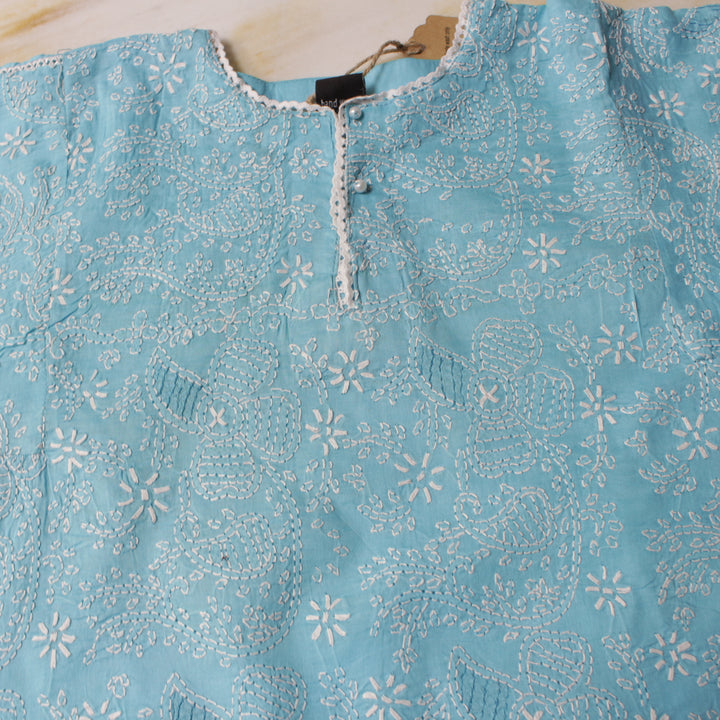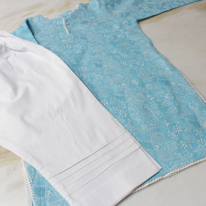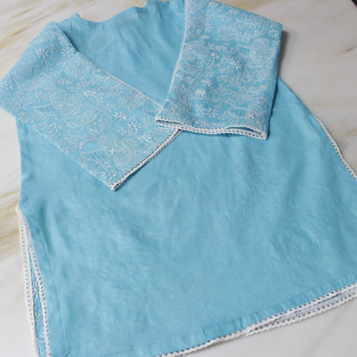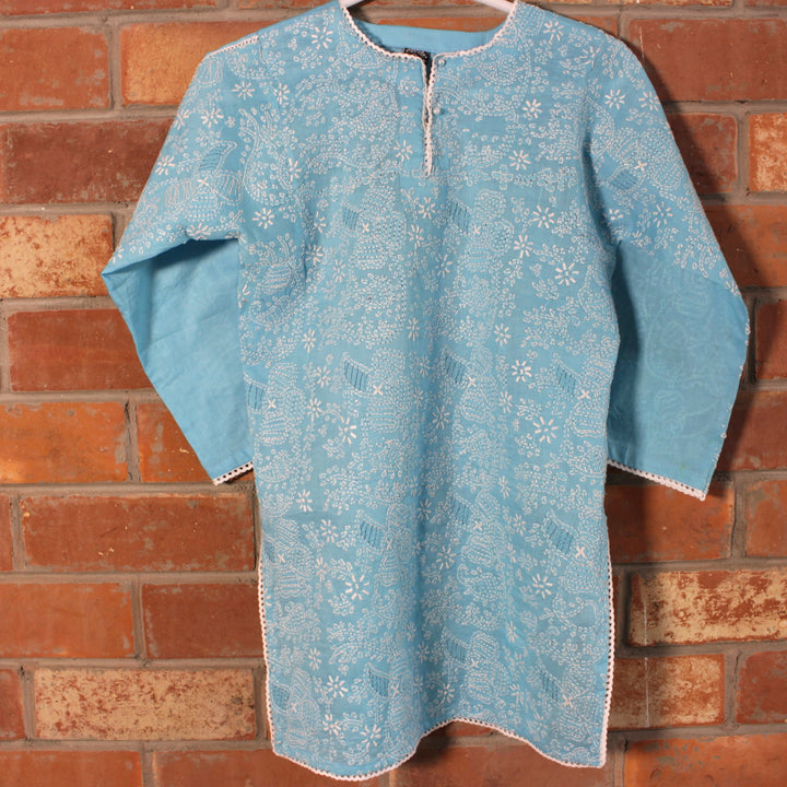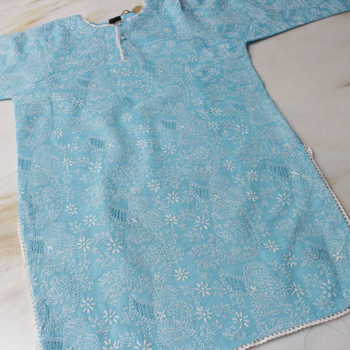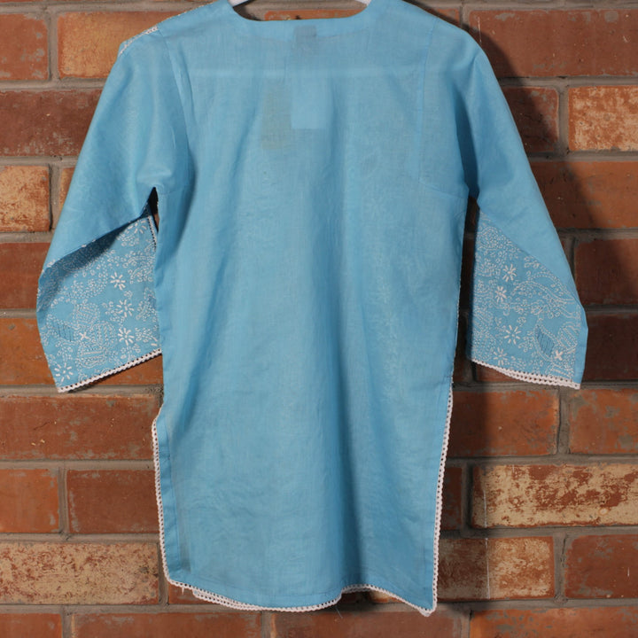Kids - Sky - Hand-Embroidered Kurta - Size 7-8 years