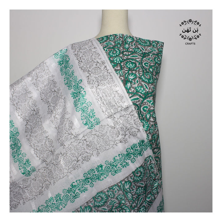 - Hand block printed on white lawn