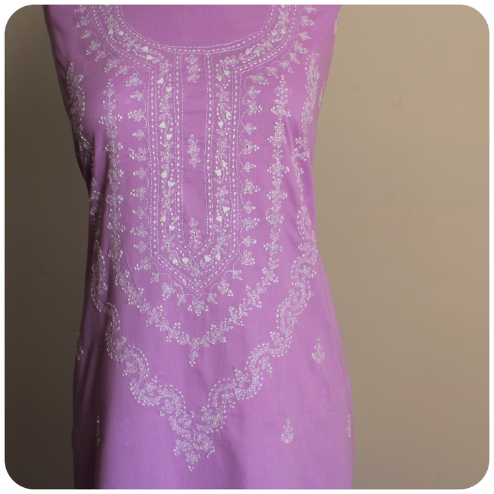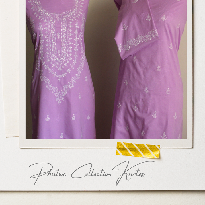 A statement piece in lilac, representing purity & spirituality. ‘Lilac Love’ kurta is hand-embroidered with white cotton thread, with the most delicate details & intricate work.