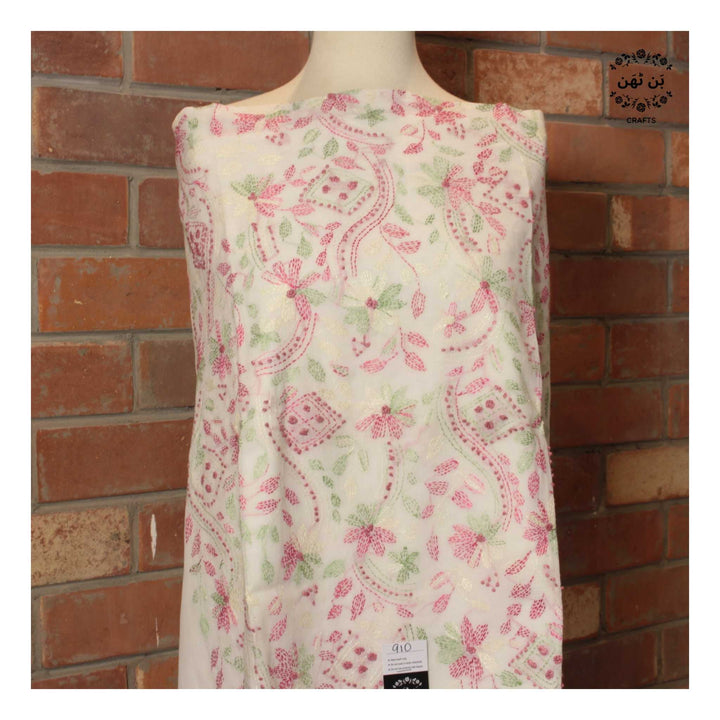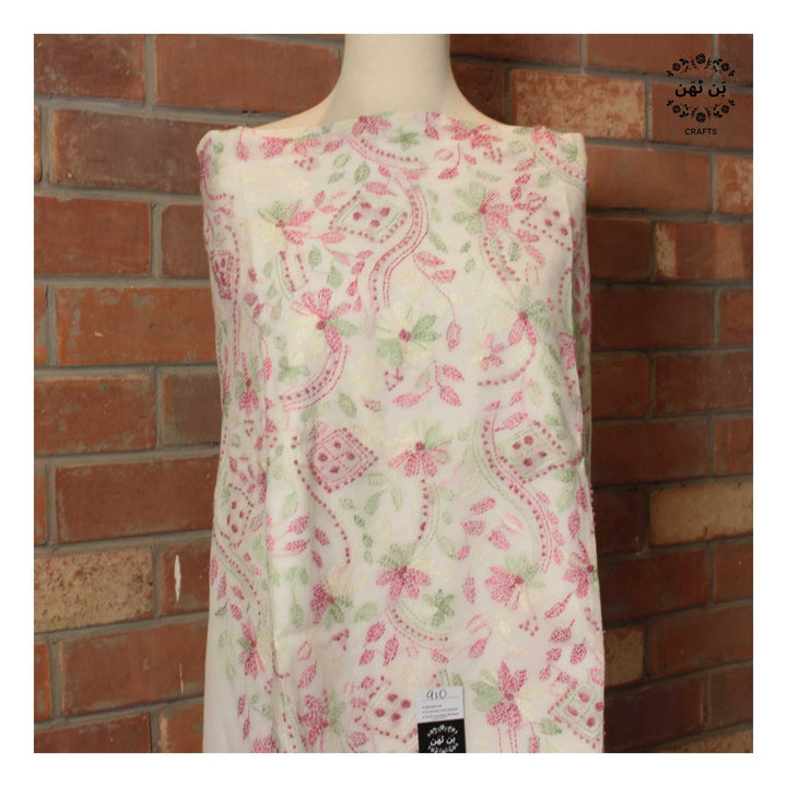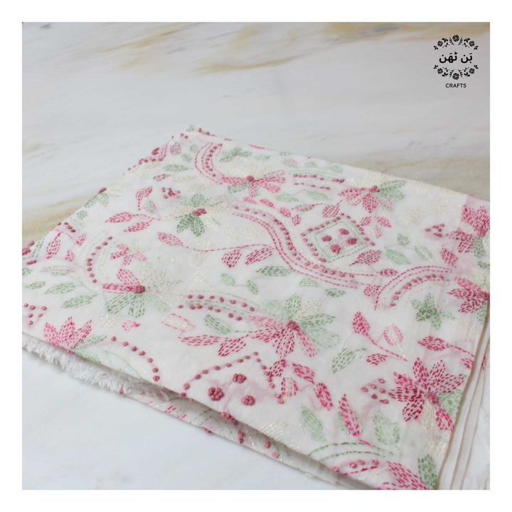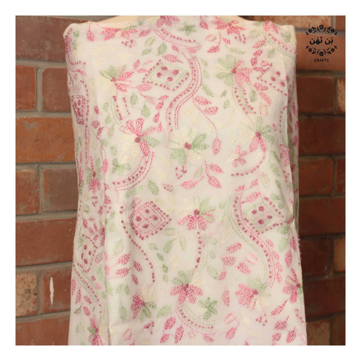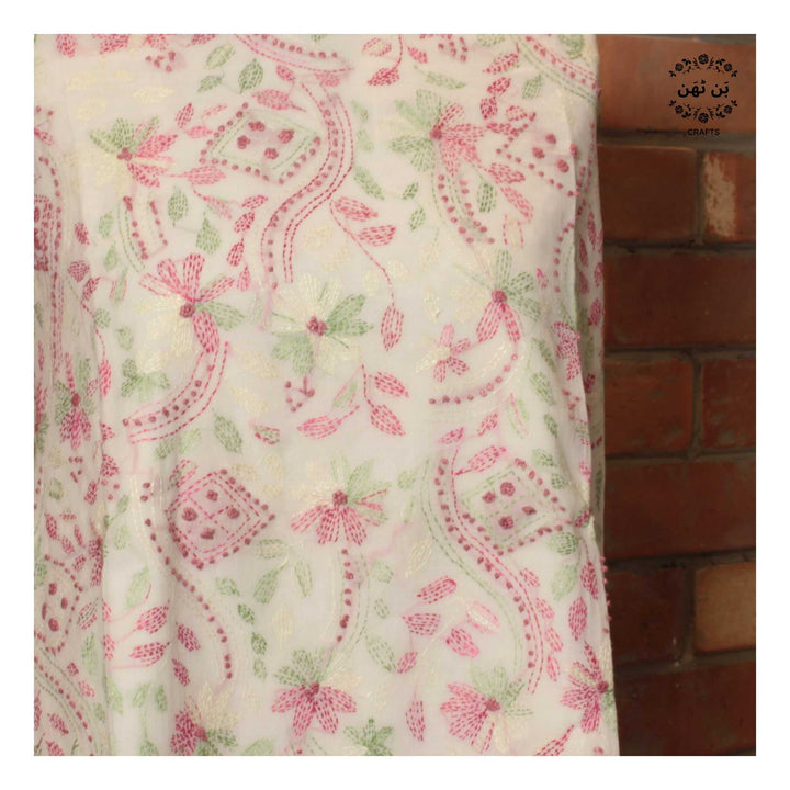 - Hand-embroidered front with delicate kantha work