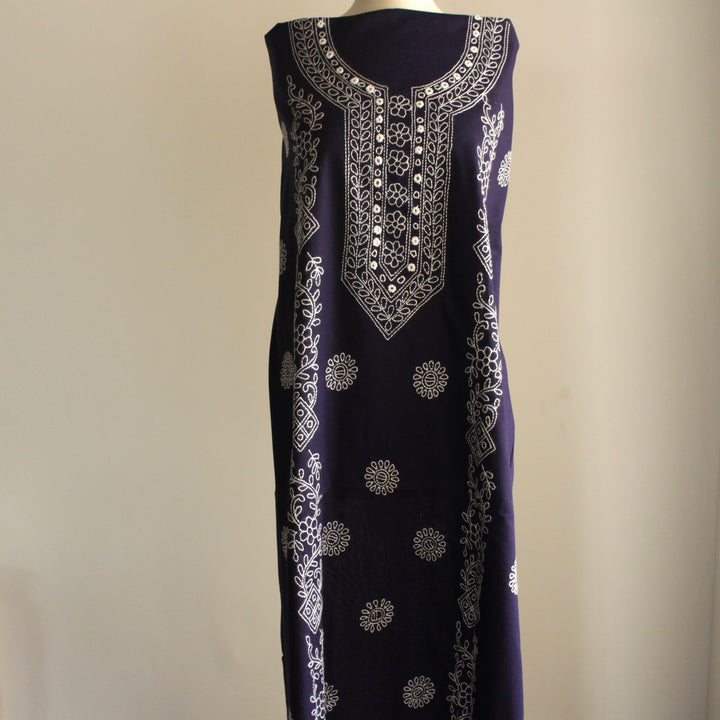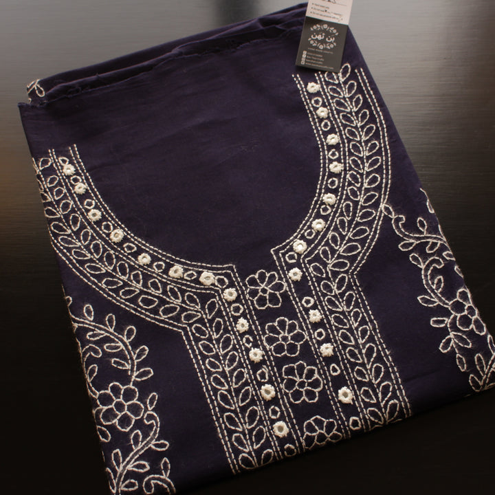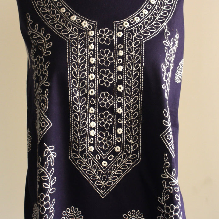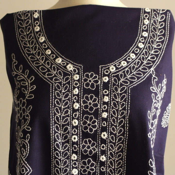 Navy - Lawn - Kurta (with neckline & light embroidery)
