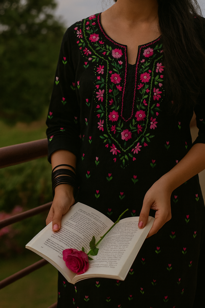 Disclaimer: Each kurta is handcrafted, resulting in slight variations in color and design, making every piece unique. Actual colors may differ slightly due to device display settings.