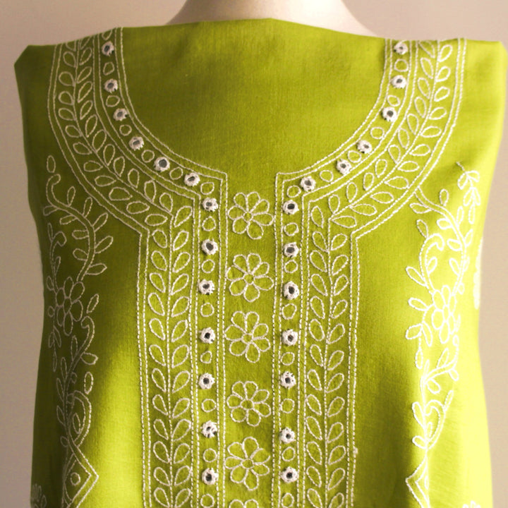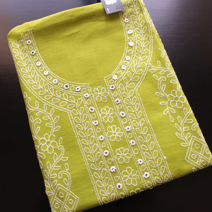 Olive - Lawn - Kurta (with neckline & light embroidery)