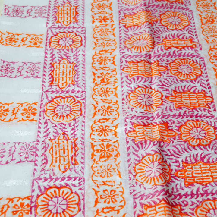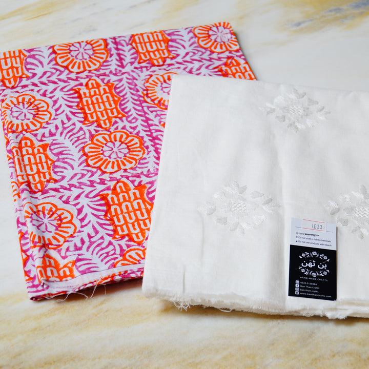 Hand block printed on white lawn