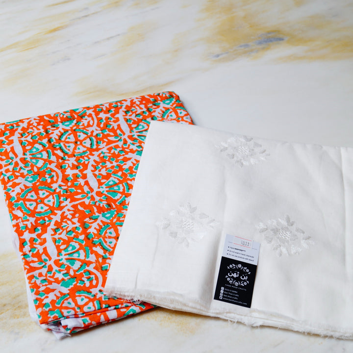 Hand block printed on white lawn