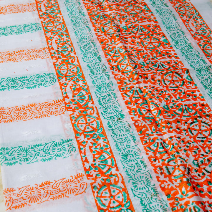 Hand block printed with borders & motifs