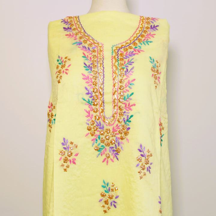 Pastel Yellow - Lawn - Kurta (with gota work)
