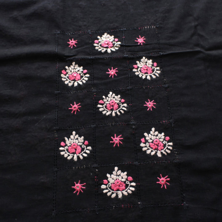 Hand embroidered front with neckline)