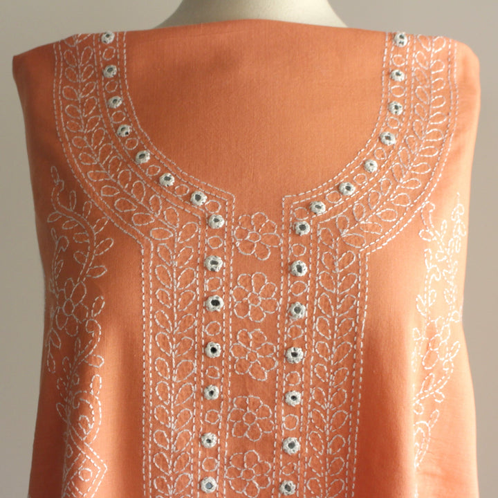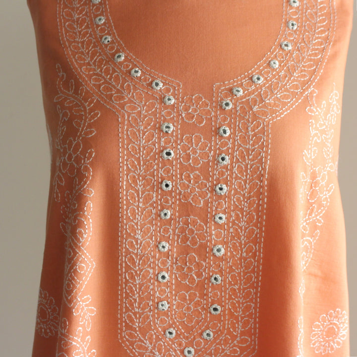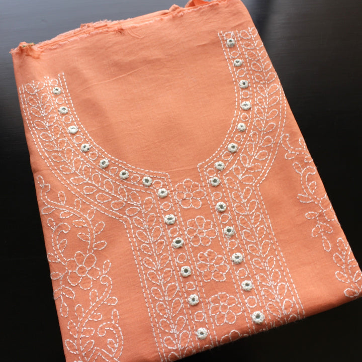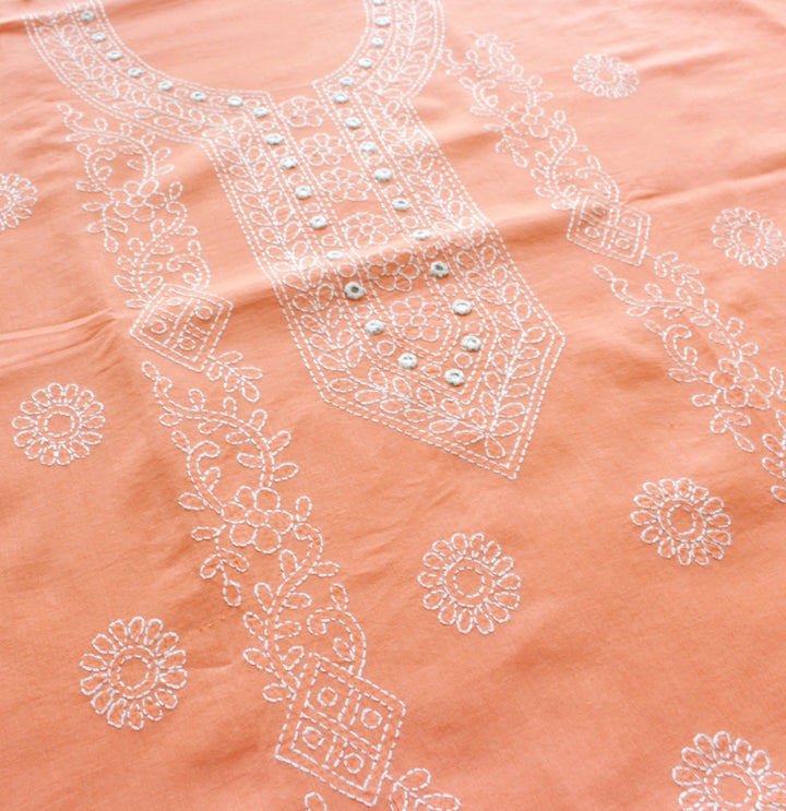 Salmon - Lawn - Kurta (with neckline & light embroidery)