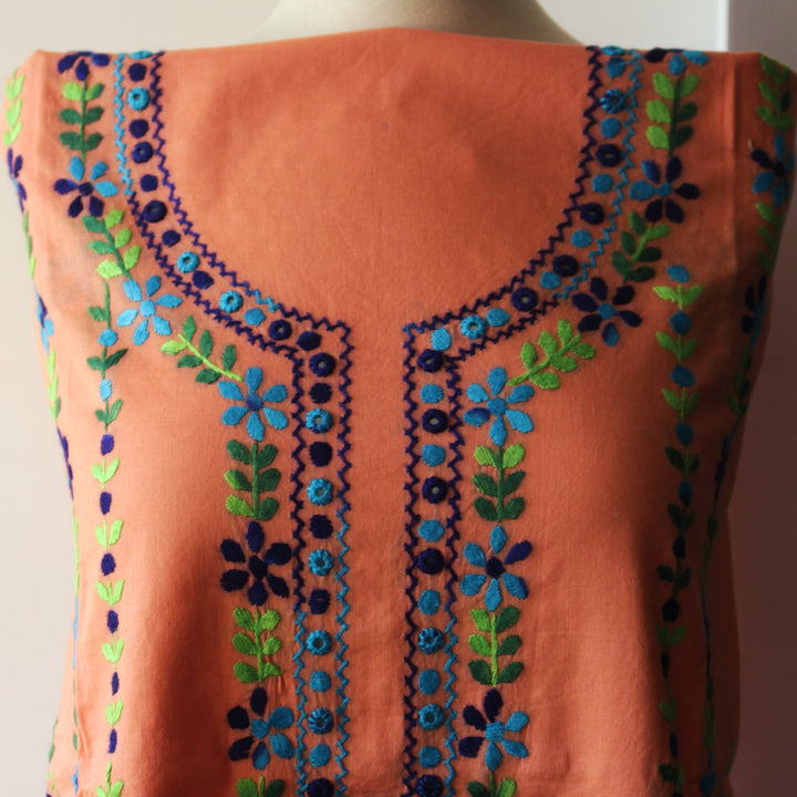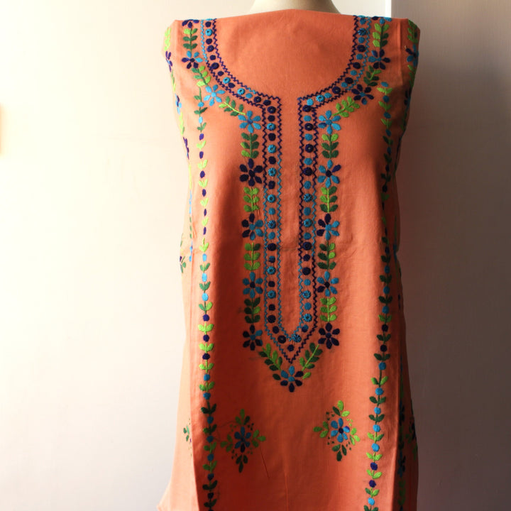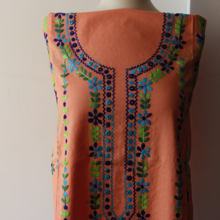 Salmon Pink - Lawn - Kurta (with neckline and border)