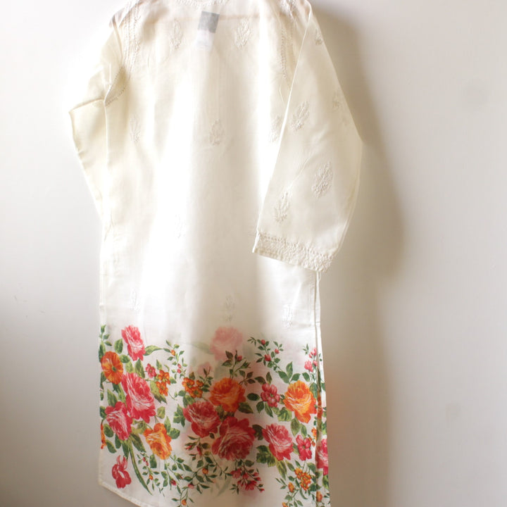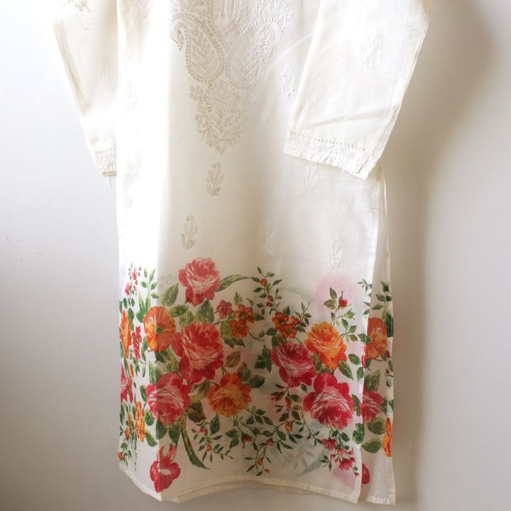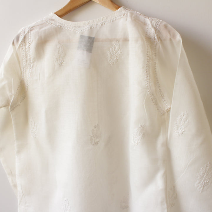 STITCHED - WHITE - LUCKHNOWI CHIKANKARI KURTA - 2227
