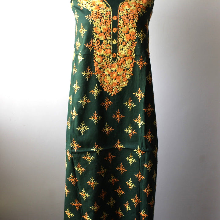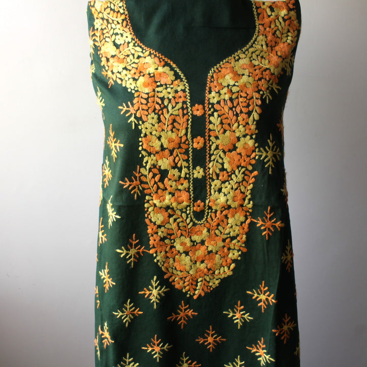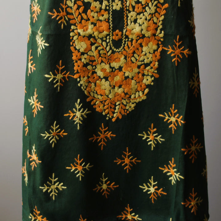 - Hand-embroidered front with neckline