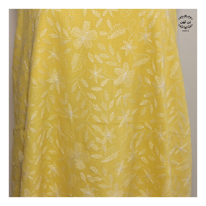 - Hand-embroidered front with delicate kantha work