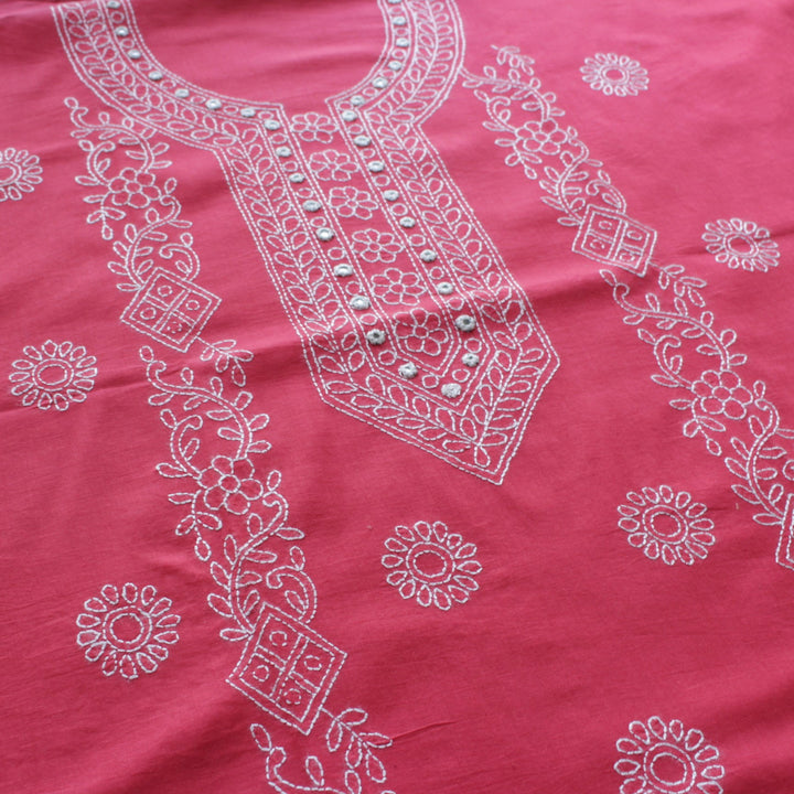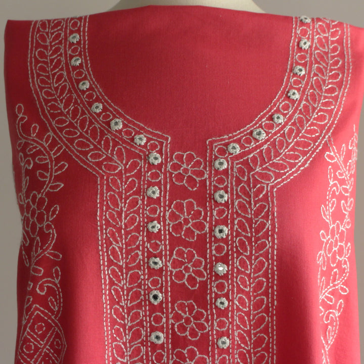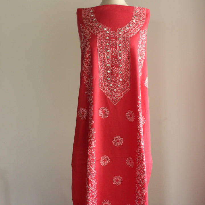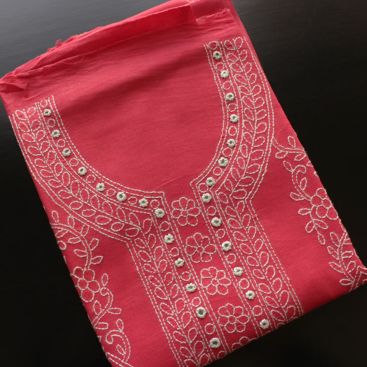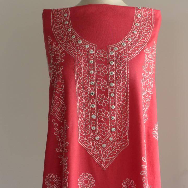 Carrot Pink - Lawn - Kurta (with neckline & light embroidery)
