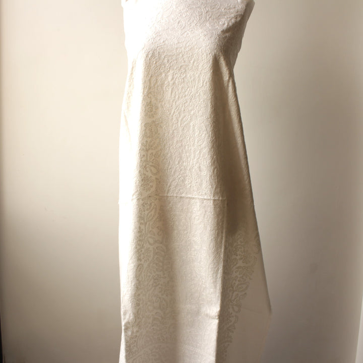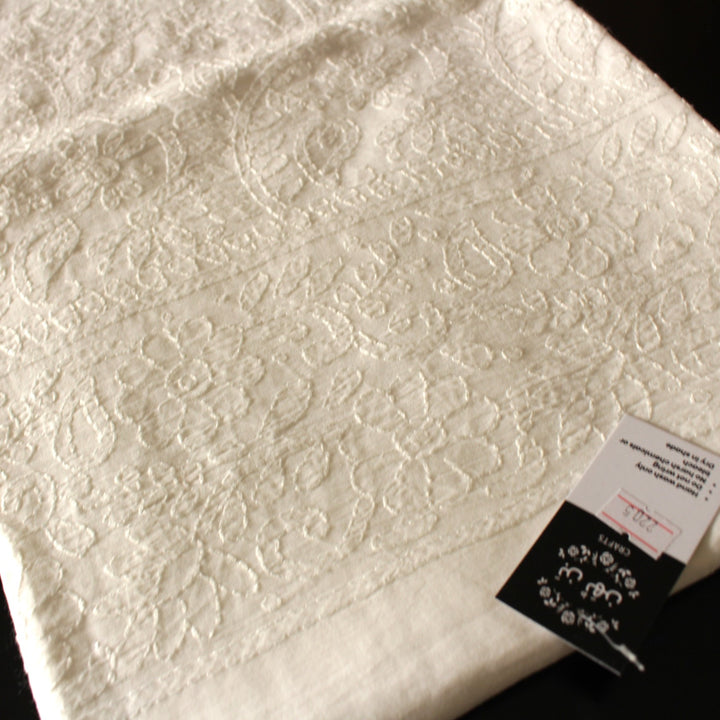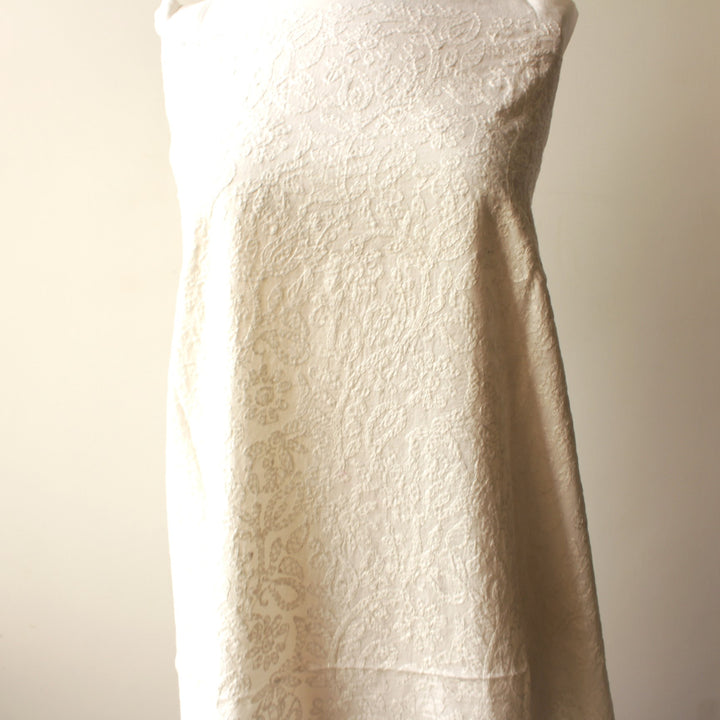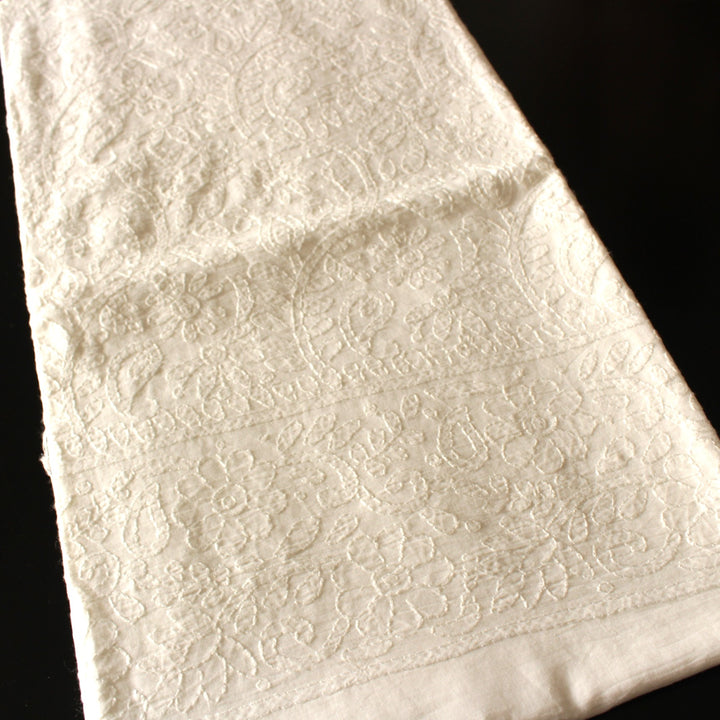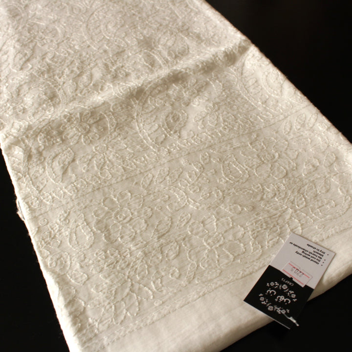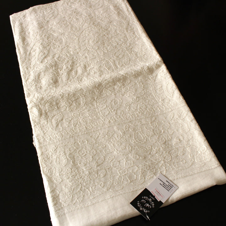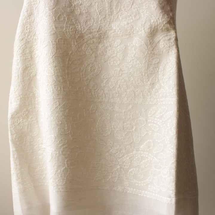 This white lawn kurta features intricate hand embroidery with white thread.